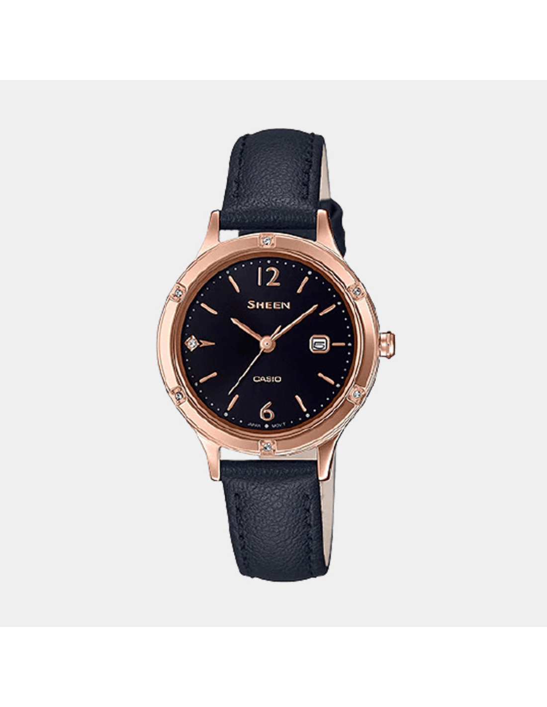 This Sheen SHE-4533PGL-1AUDF watch features:, Leather Band Material, Stainless Steel Case Material, Analog Display, 50M Water Resistance, Sapphire Crystal Glass,