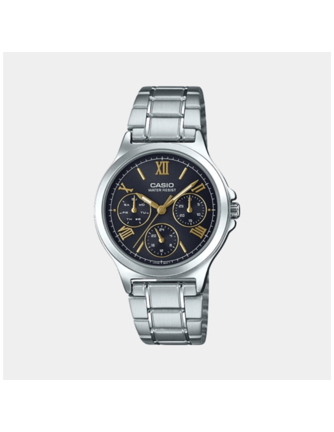 This Casio Women LTP-V300D-1A2UDF watch features:, Stainless Steel Band Material, Stainless Steel Case Material, Analog Display, Water Resistant Water Resistance, Mineral Glass,