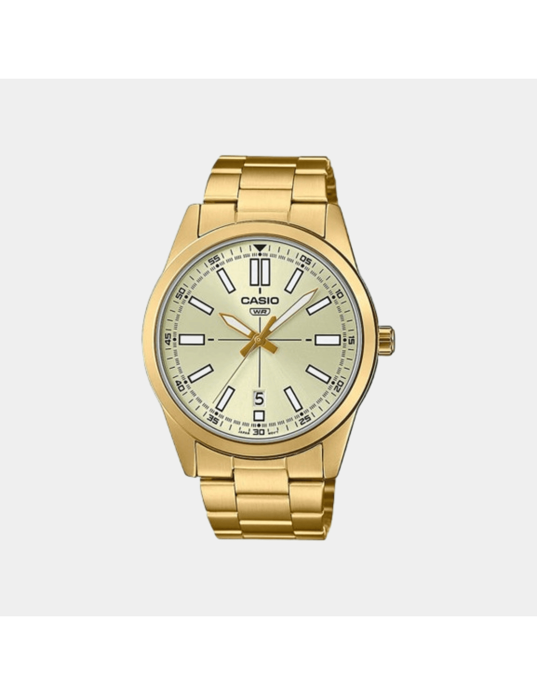This Casio Men MTP-VD02G-9EUDF watch features:, Stainless Steel Band Material, Stainless Steel Case Material, Analog Display, Water Resistant Water Resistance, Mineral Glass,