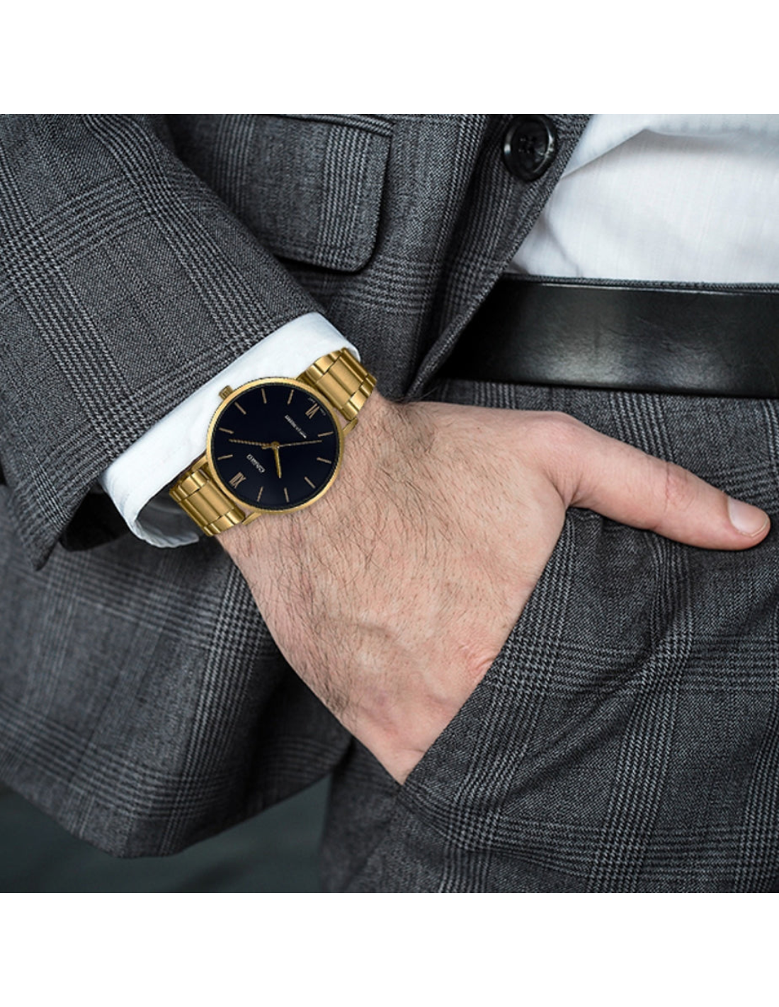This Casio Men MTP-VT01G-1BUDF watch features:, Stainless Steel Band Material, Stainless Steel Case Material, Analog Display, Water Resistant Water Resistance, Mineral Glass,