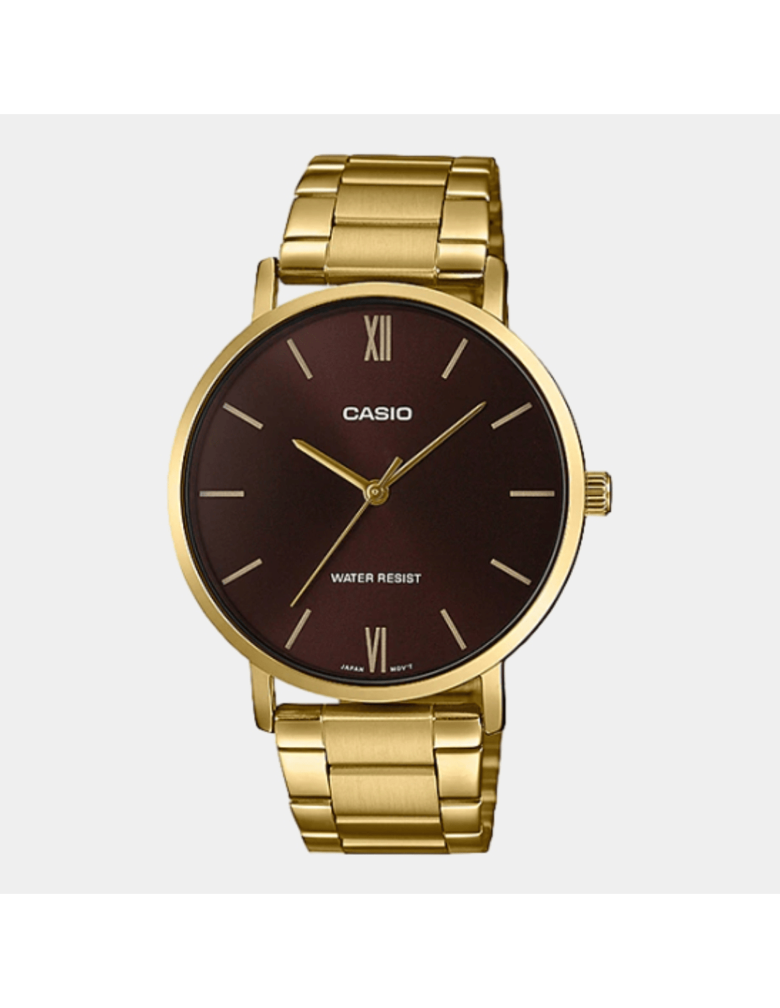 This Casio Men MTP-VT01G-5BUDF watch features:, Stainless Steel Band Material, Stainless Steel Case Material, Analog Display, Water Resistant Water Resistance, Mineral Glass,