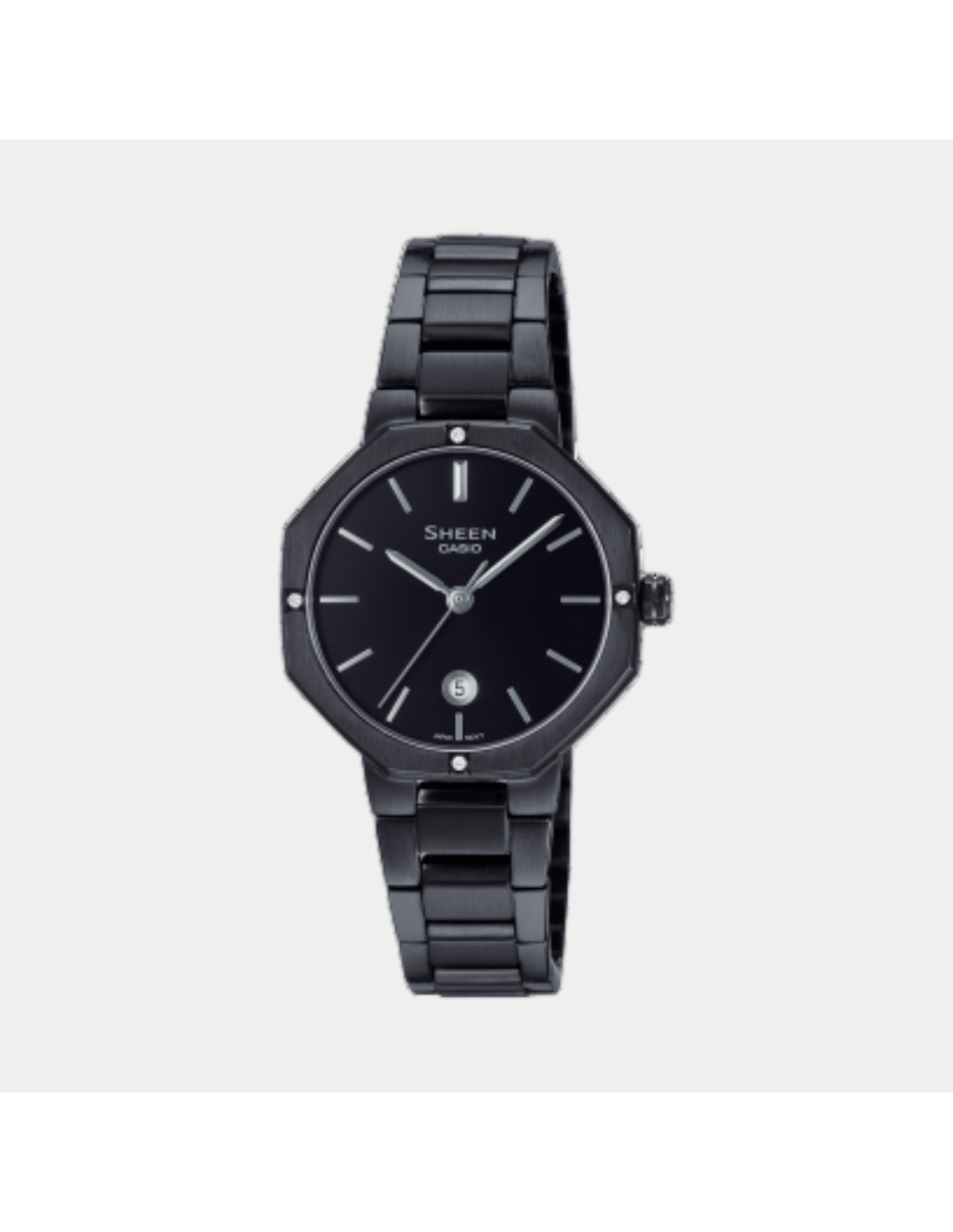 This Sheen SHE-4543BD-1AUDF watch features:, Stainless Steel Band Material, Stainless Steel Case Material, Analog Display, 50M Water Resistance, Sapphire Crystal Glass,