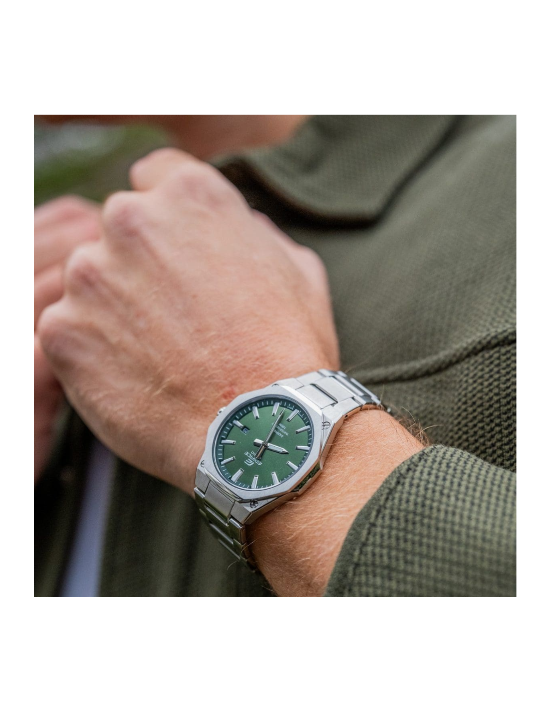 This EDIFICE EFR-S108D-3AVUDF watch features:, Stainless Steel Band Material, Stainless Steel Case Material, Analog Display, 100M Water Resistance, Mineral Glass,