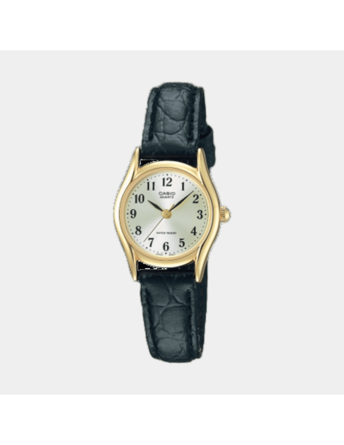 This Casio Women LTP-1094Q-7B2RDF watch features:, Genuine leather Band Material, Palladium Plate Case Material, Analog Display, Water Resistant Water Resistance, Mineral Glass,