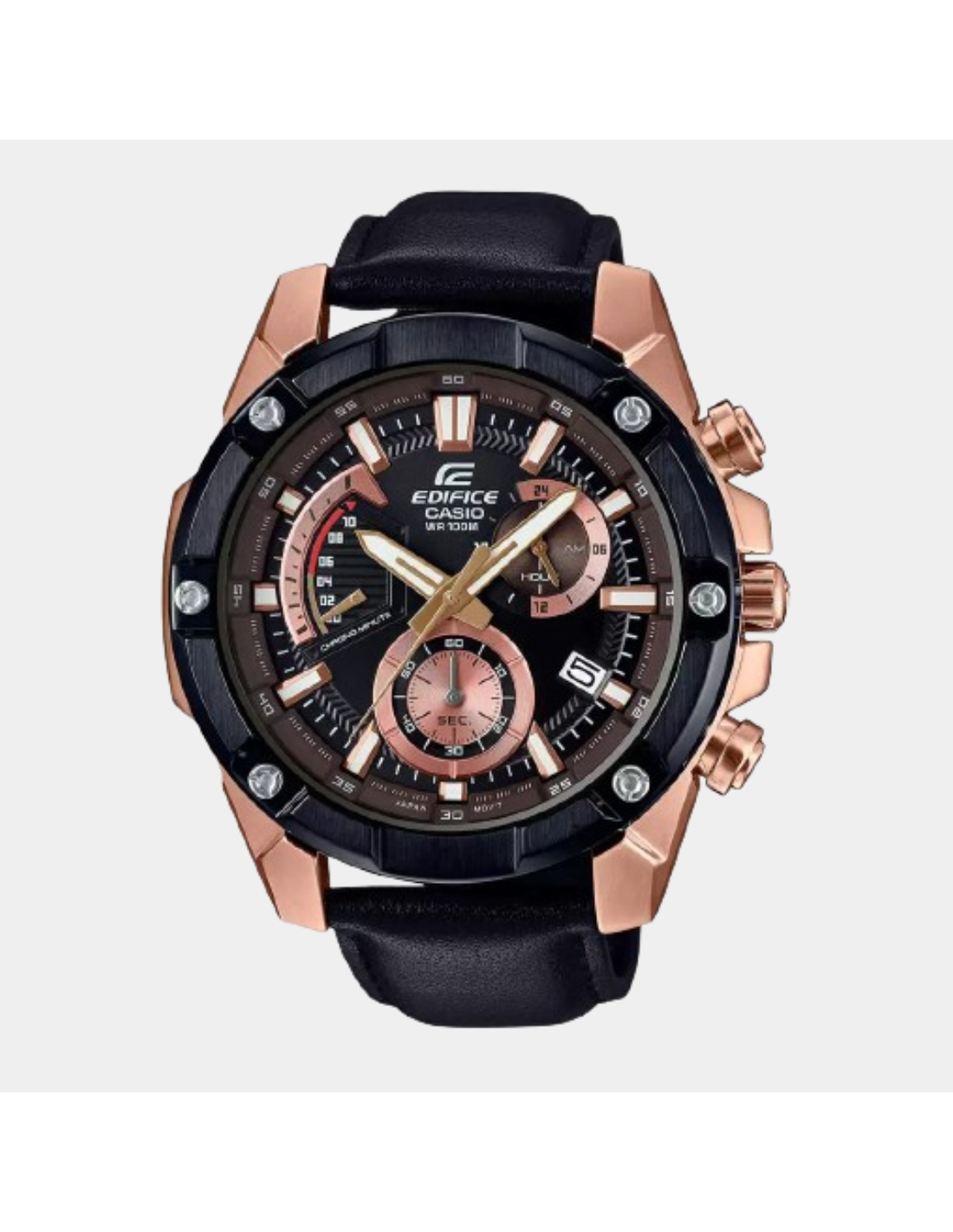 This Edifice EFR-559BGL-1AVUDF watch features:, Leather Band Material, Stainless Steel Case Material, Analog Display, 100M Water Resistance, Mineral Glass, Chronograph, Stop Watch,