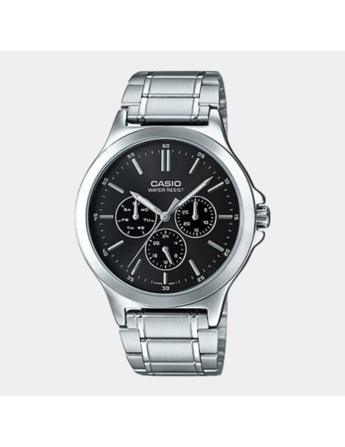 This Casio Men MTP-V300HD-1AUIF watch features:, Stainless Steel Band Material, Stainless Steel Case Material, Analog Display, Water Resistant Water Resistance, Mineral Glass,
