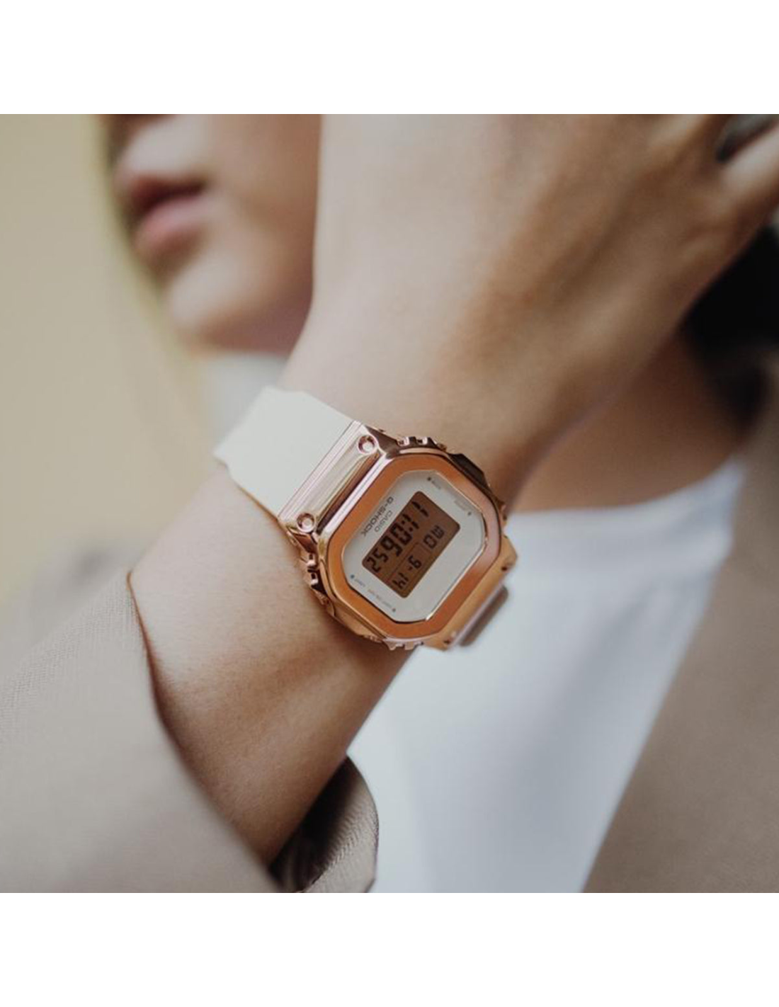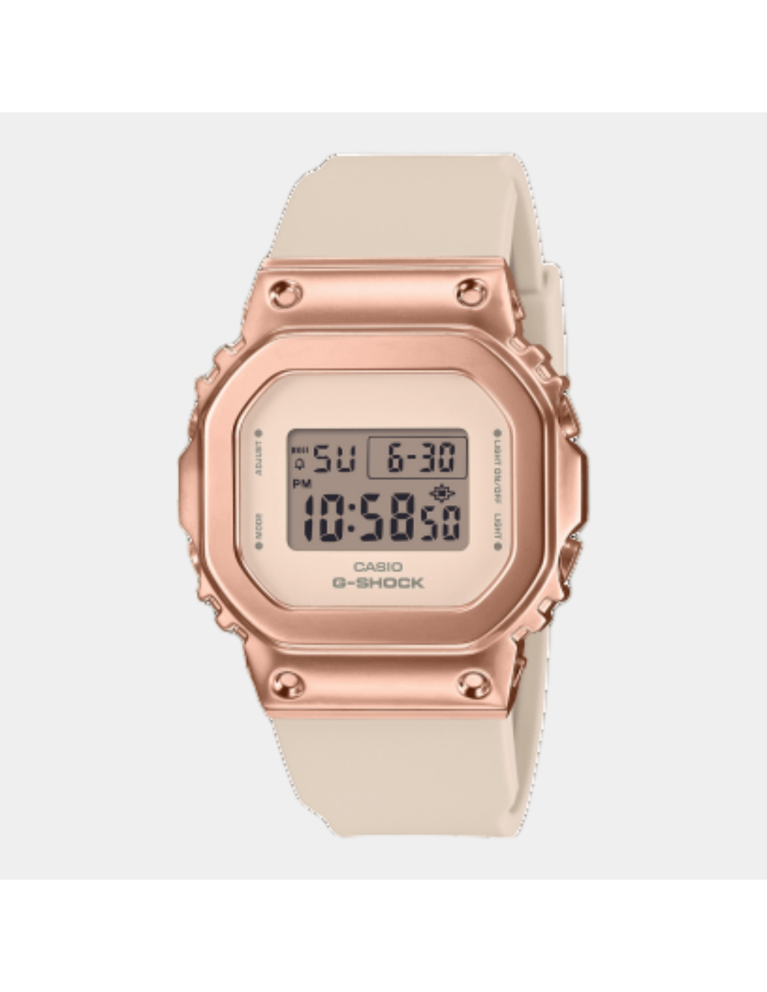 This G-Shock GM-S5600PG-4DR watch features:, Resin Band Material, Resin/ Stainless Steel Case Material, Digital Display, 200M Water Resistance, Mineral Glass, Chronograph, Alarm clock, Stop Watch,