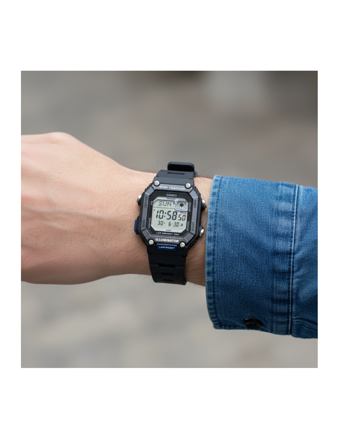 This Casio Resin WS-B1000-1AVDF watch features:, Resin Band Material, Resin Case Material, Digital Display, 100M Water Resistance, Resin Glass, Bluetooth Connectivity, Chronograph, Alarm clock, Step Tracker, Stop Watch, World time, Phone Finder, Dual time,