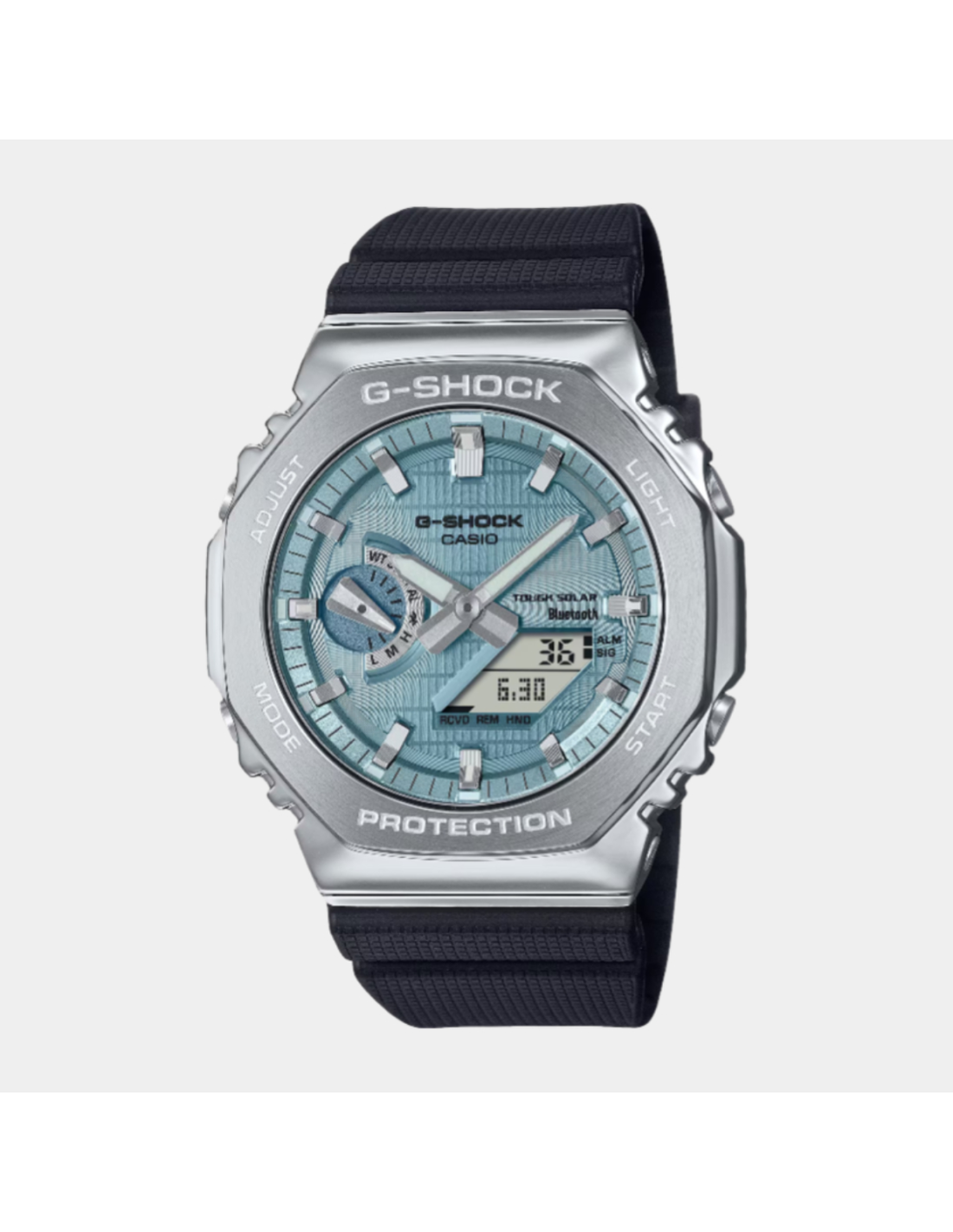 A rugged, vintage-style G-SHOCK with an octagonal case design, combining analog-digital display, solar charging, and Bluetooth smartphone connectivity for enhanced smart features.
