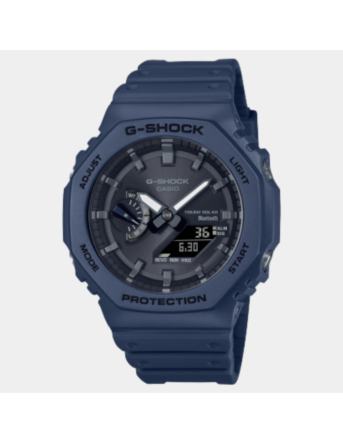 This G-SHOCK GA-B2100-2ADR watch features:, Resin Band Material, Carbon Case Material, Analog-Digital Display, 200M Water Resistance, Mineral Glass, Bluetooth Connectivity, Chronograph, Alarm clock, Tough Solar, Stop Watch, World time, Hand Shift Feature, Phone Finder, Neobrite Hands,