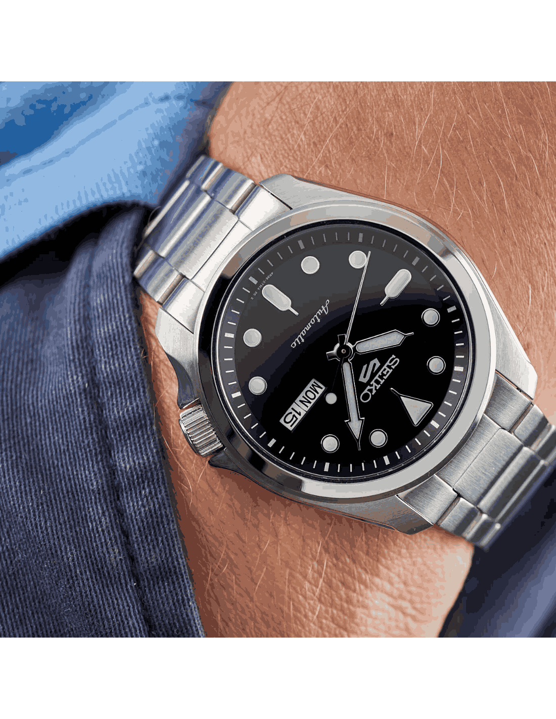The SRPE55K1 is a 40 mm automatic dress-casual diver-inspired watch featuring a matte black dial with polished markers and skeleton handset reminiscent of Tudor’s BB36/Explorer aesthetic. It’s powered by Seiko’s Caliber 4R36 (≈41‑hour reserve, manual‑wind & hacking) with day-date, LumiBrite hands/indexes, 100 m water resistance, and a see-through screw‑down back. At ~142 g with bracelet, it wears sporty yet refined—often considered one of the best value automatic watches