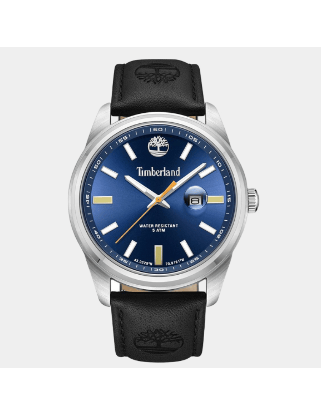 DIAL:Blue, HANDS:Hour, minute, second, DATE:DateWATER RESISTENT: 5 bar water resistant, MATERIAL: Stainless steel case and Screw case back, BAND:Black leather strap, CRYSTAL:Mineral crystal, CASE SIZE:45mm, CASE THICKNESS:12mm, BAND WIDTH:24mm, FUNCTION: , CALIBER:, JEWELS: ,