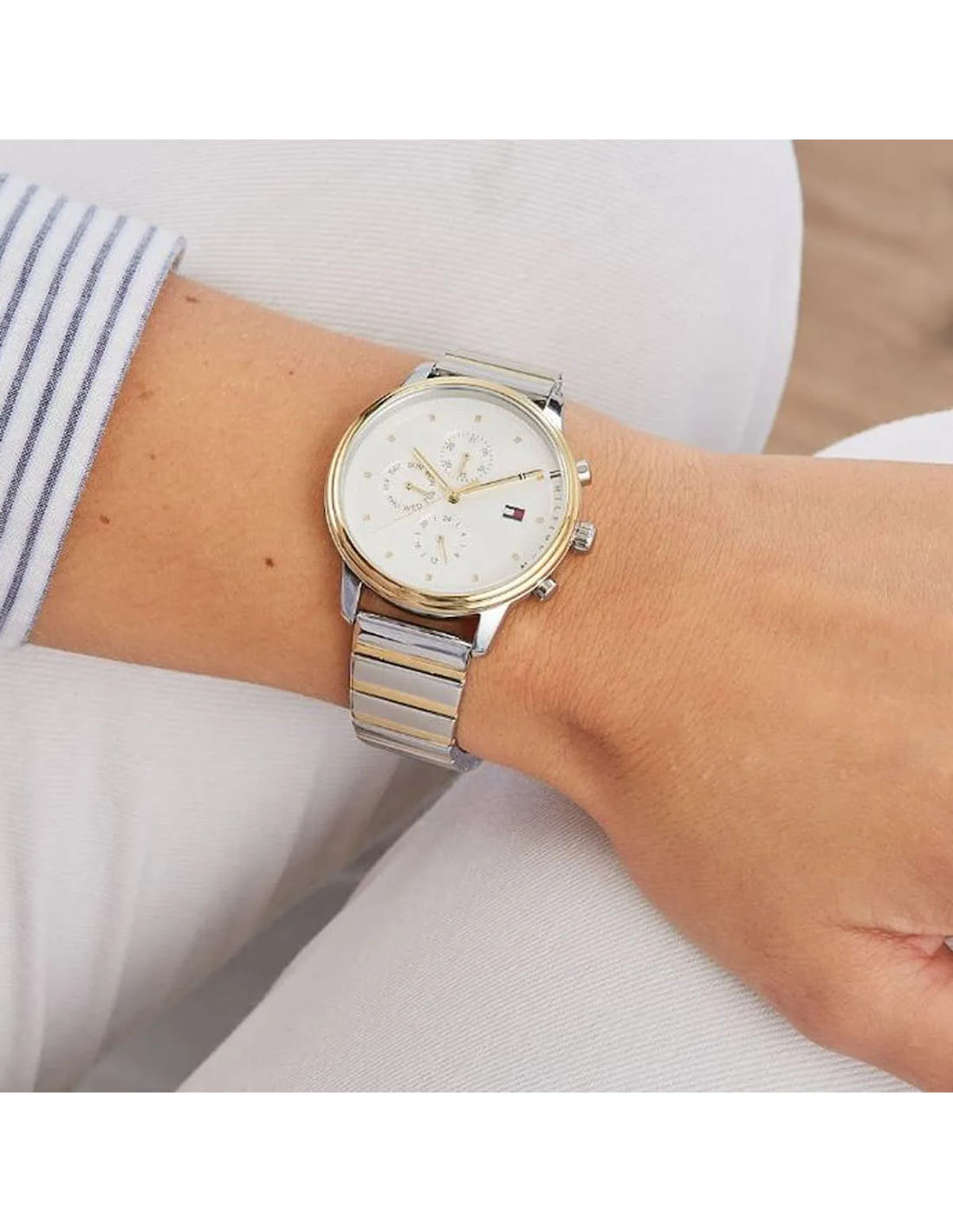 A perfect blend of elegance and functionality, the Tommy Hilfiger 1781908 is a sophisticated chronograph-style watch designed for modern women. Featuring a two-tone (silver and gold) stainless steel bracelet and a clean white dial, it exudes classic Tommy style with a contemporary twist. Ideal for both casual and formal settings, this watch balances fashion and practicality effortlessly.