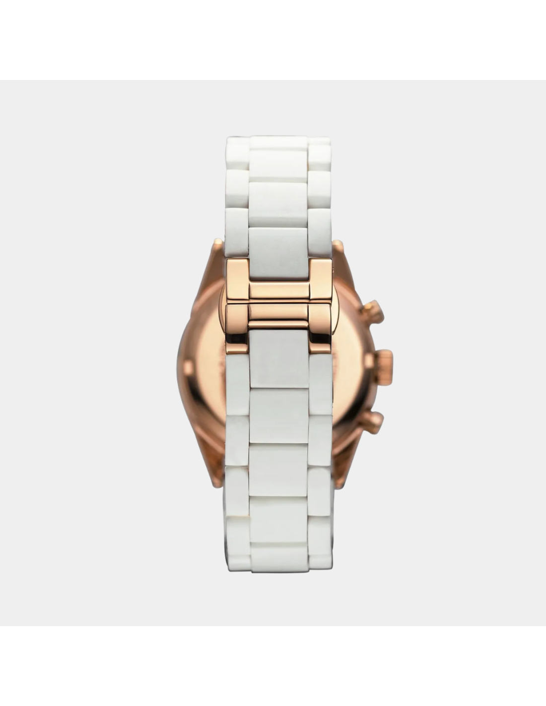 The Emporio Armani AR5920 is a bold men’s chronograph featuring a 43 mm stainless steel case, a deep blue dial with white and silver-tone details, and a sporty blue silicone strap. Its reliable quartz chronograph movement and nautical-inspired look make it perfect for casual and sporty everyday wear.
