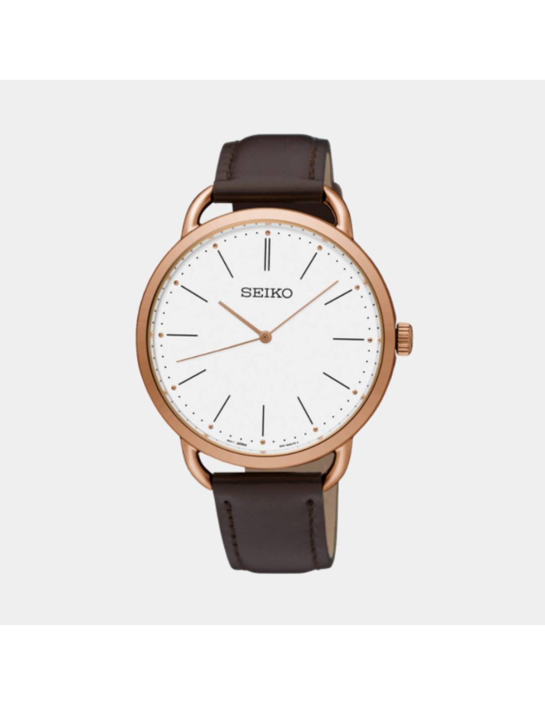 The Seiko SUR234P1 is a refined dress watch blending elegance and simplicity. It features a white dial set within a rose gold-tone stainless steel case, contrasted by a brown leather strap for a classic look. Driven by the Quartz 6N01 movement, it offers reliable, low-maintenance accuracy. With 50 m water resistance and a sleek 38.4 mm case, it’s ideal for formal wear and everyday sophistication.