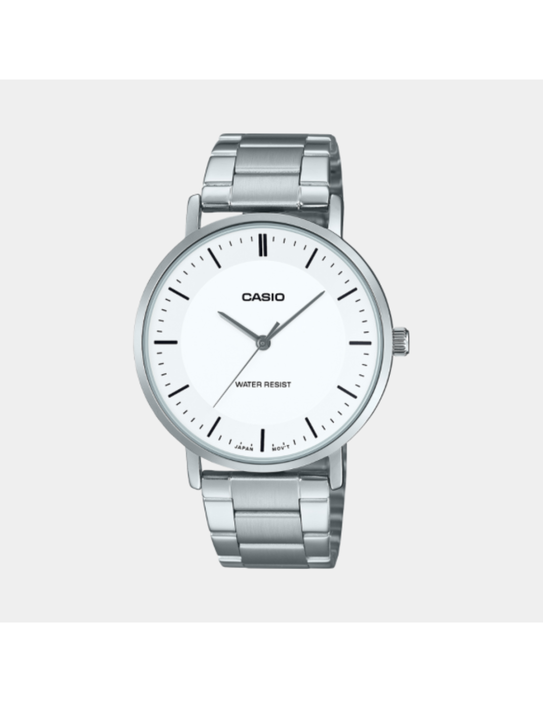 The MTP-VT04D-7EDF features a sleek, minimalist design with a concave-shaped white dial that gently hugs the wrist, providing both aesthetic appeal and comfort. Its stainless steel case and bracelet offer durability and a polished look, making it versatile for both casual and semi-formal occasions. Powered by a reliable quartz movement, it ensures accurate timekeeping with minimal maintenance. With water resistance suitable for everyday activities and a battery life of approximately three years, this watch combines functionality with style.