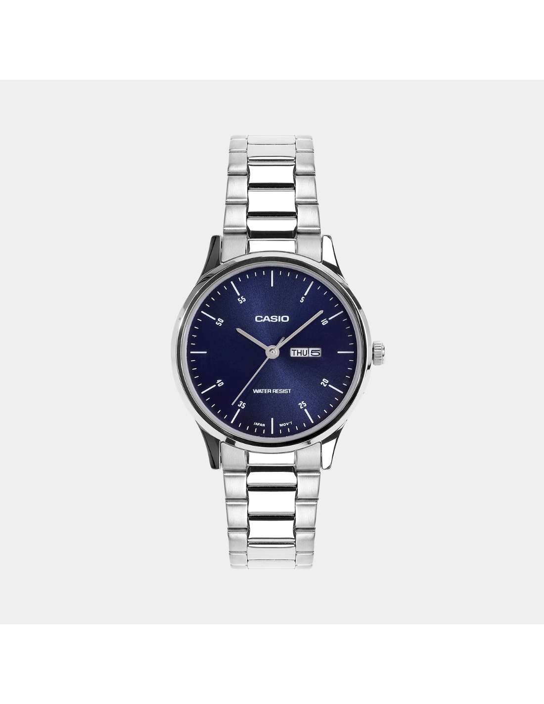 The Casio LTP-SN8YD-2B is a classic ladies’ analog watch from the Enticer collection, featuring a deep blue dial within a 32 mm case diameter that offers a balanced, refined wrist presence. Powered by reliable quartz movement, it provides accurate three-hand timekeeping protected under durable mineral glass. The watch combines an ion-plated stainless steel case with a matching bracelet secured by a one-touch 3-fold clasp for everyday comfort and style. With 30 m water resistance, it can withstand daily splashes and light rain, making it a versatile timepiece for casual, office, or everyday wear.